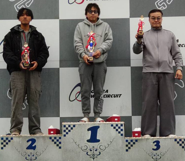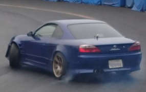 さてドリコンはウエット路面なのに最終アウトラインという鬼畜審査。ドリフト上級は、見事1発を決めたハヤトが優勝!おめでとうございます。激戦の中級は、2本出しうるせーよ涼太が優勝しました。